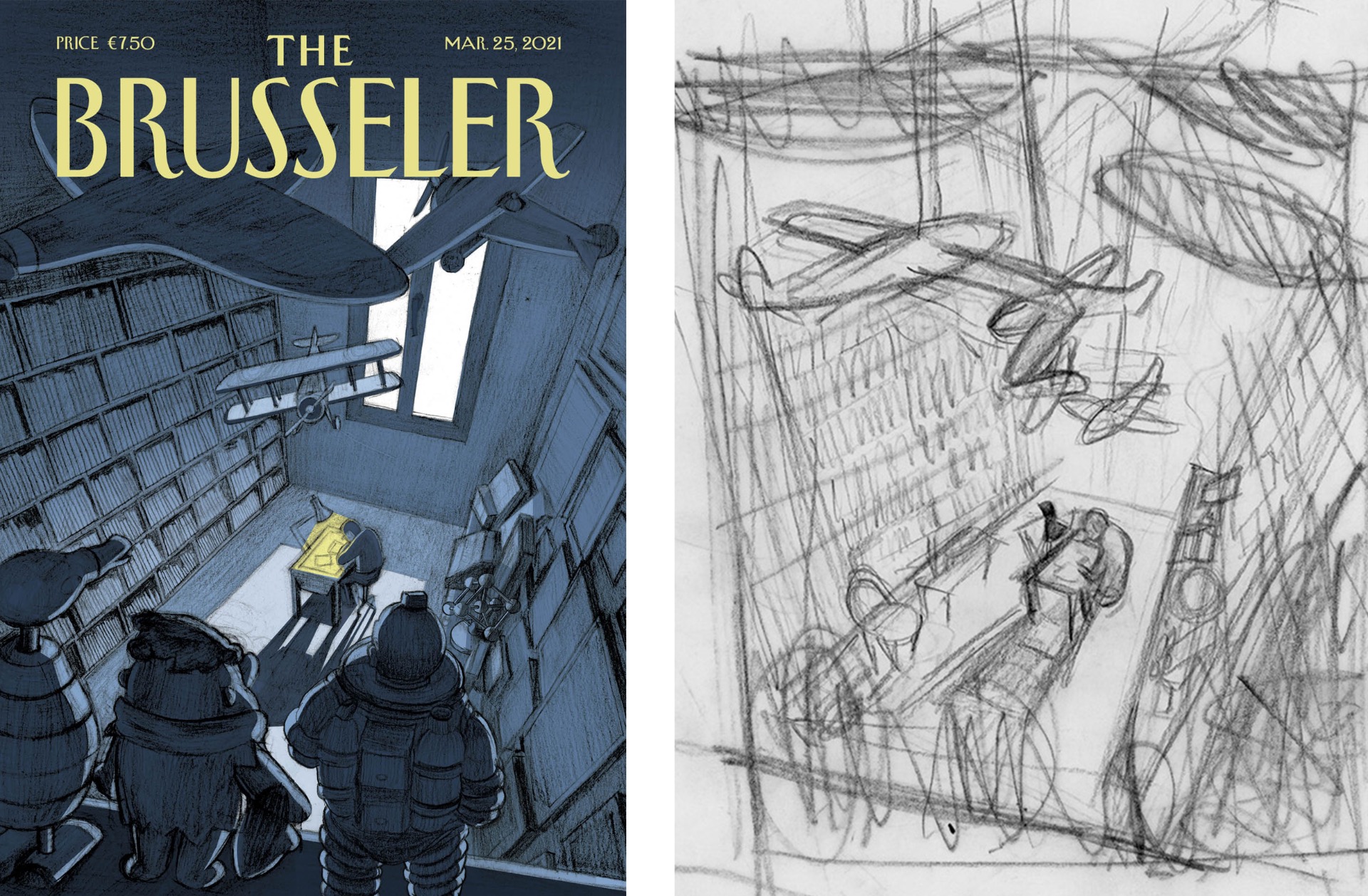 Bijdrage voor het Brusselse Huis van het Beeld voor de reeks 'hommages aan The New Yorker'. Meer dan 100 bekende illustratoren gingen in op de uitnodiging. Elk van ons ontwierp, in de stijl van The New Yorker, een fictieve omslag op het thema Brussel: een gastvrij en vertederend stadje door zijn menselijke dimensie, en niettemin de hoofdstad van...