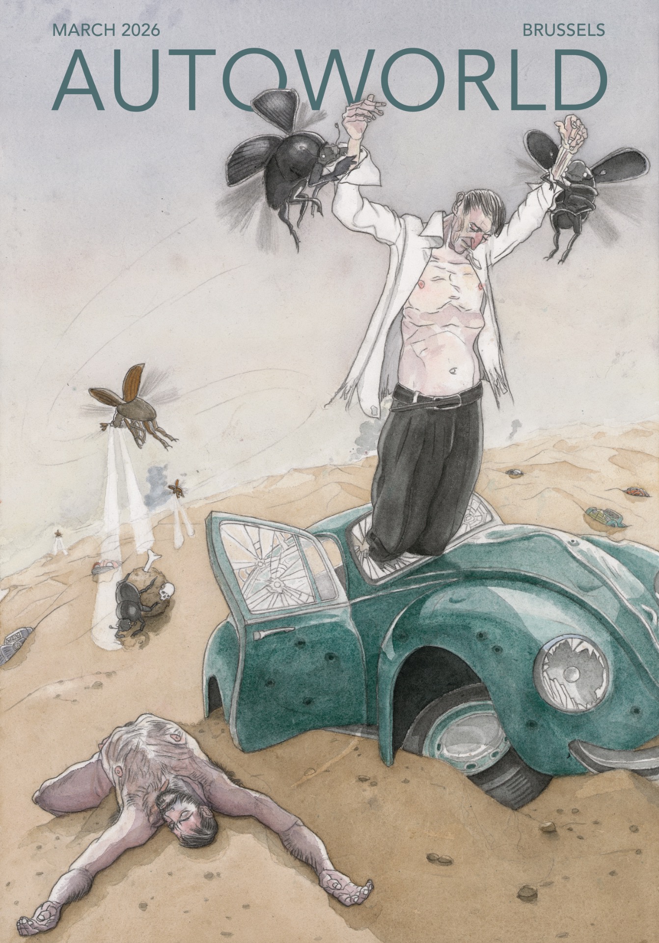 Een honderdtal illustratoren gaven gehoor aan de uitnodiging van het Huis van het Beeld om de omslag te ontwerpen van een fictief tijdschrift met de titel Autoworld.